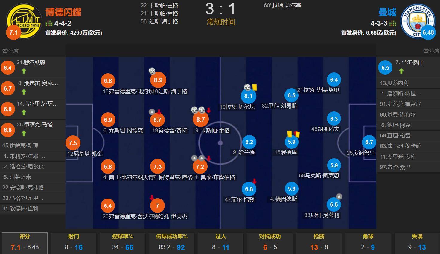 ในการพลิกโผที่น่าตกตะลึง แมนเชสเตอร์ ซิตี้ เหลือผู้เล่นเพียงสิบคน พ่ายแพ้ 1-3 ในเกมเยือนโบโด/กลิมท์ ส่งผลให้ทีมจากนอร์เวย์คว้าชัยชนะนัดแรกในศึกยูฟ่า แชมเปียนส์ลีก ฤดูกาลนี้ พร้อมกับเป็นความพ่ายแพ้ติดต่อกันเป็นนัดที่สองของแมนฯ ซิตี้ในทุกรายการ