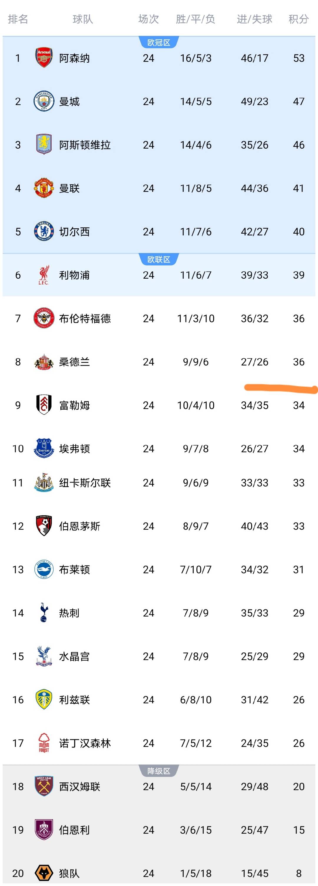 ในช่วงเช้าตรู่ของวันนี้ การแข่งขันนัดสุดท้ายของรอบที่ 24 ของพรีเมียร์ลีกได้สิ้นสุดลงแล้ว โดยซันเดอร์แลนด์และเบิร์นลีย์ได้ลงสนามแข่งขัน หลังจากจบการแข่งขันนี้ ทุกทีมในพรีเมียร์ลีกได้เสร็จสิ้นการแข่งขันในรอบที่ 24 แล้ว ซึ่งส่งผลให้เกิดการเปลี่ยนแปลงในตารางคะแนนลีก มาดูกัน