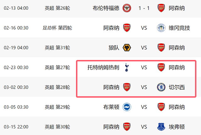 เมื่อวันที่ 13 กุมภาพันธ์ เวลาปักกิ่ง อาร์เซนอลเดินทางไปพบกับเบรนท์ฟอร์ด หนึ่งในทีมที่มีฟอร์มการเล่นดีที่สุดในพรีเมียร์ลีก ทีมเยือนขึ้นนำก่อน 1-0 แต่ไม่สามารถต้านทานการกลับมาของเจ้าบ้านได้ สุดท้ายจบเกมด้วยผลเสมอ 1-1