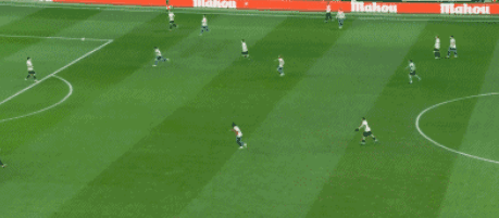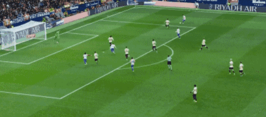 แอตเลติโก มาดริด ยังคงเดินหน้าบุกอย่างไม่ลดละ ก่อนจะเจาะตาข่ายได้อีกครั้งในนาทีที่ 34 อัลวาเรซรับบอลย้อนในกรอบเขตโทษก่อนจะจ่ายออกข้างอย่างไม่เห็นแก่ตัวให้กับลูกแมน ที่ยืนอยู่ในตำแหน่งที่ดีกว่าทางฝั่งซ้าย กองหน้าชาวไนจีเรียยิงเข้าไปอย่างง่ายดาย ขยายสกอร์นำเป็น 3-0ก่อนเสียงนกหวีดครึ่งแรกจะดัง อัลบาเรซได้ยิงลูกอย่างทรงพลังจากขอบเขตโทษ ทำให้เขาหยุดสถิติการทำประตูไม่ได้ใน 11 นัด และพาแอตเลติโกเข้าสู่ห้องแต่งตัวด้วยสกอร์นำ 4-0 อย่างน่าเกรงขาม