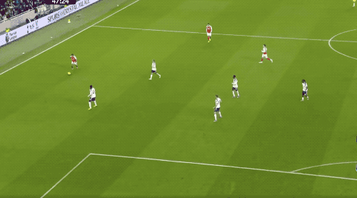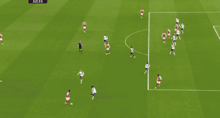 ในนาทีที่ 32 ซาก้าเลี้ยงบอลผ่านซาร์ก่อนจะเปิดบอลเข้ากลาง เอเซสัมผัสบอลแรกได้ค่อนข้างเก้ๆ กังๆ แต่เขาตามซ้ำด้วยลูกวอลเลย์เข้าไปอย่างเฉียบขาด พาอาร์เซนอลขึ้นนำ