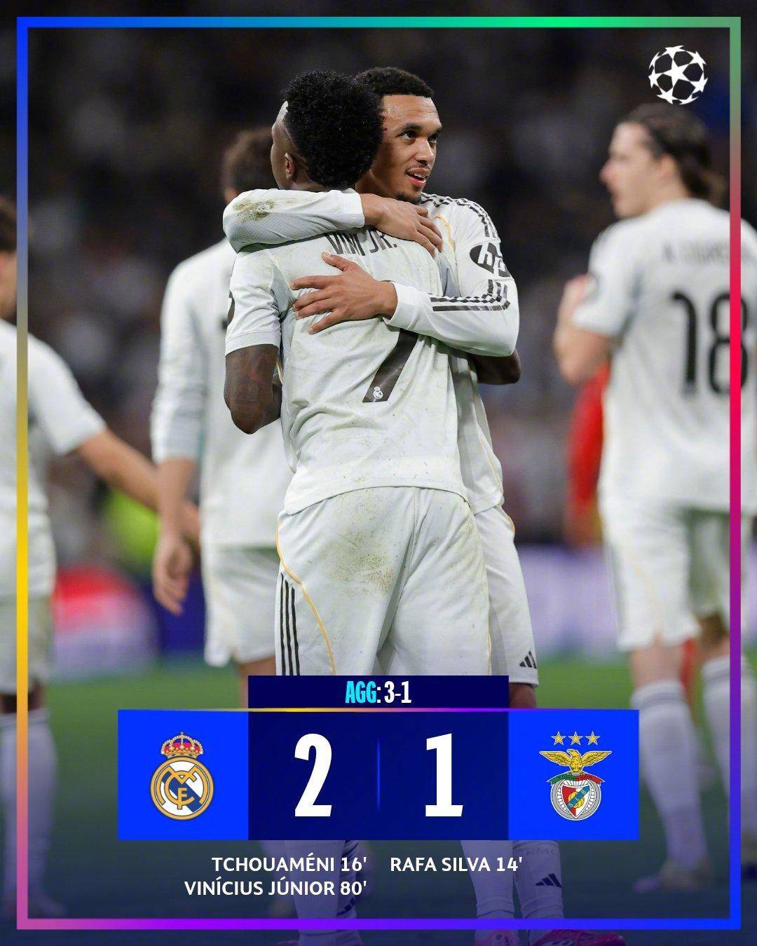 ในที่สุด เรอัล มาดริด สามารถเอาชนะ เบนฟิก้า ได้อีกครั้งด้วยสกอร์ 2-1 ทำให้พวกเขาผ่านเข้าสู่รอบ 16 ทีมสุดท้ายด้วยสกอร์รวมสองนัด 3-1 การแข่งขันในรอบต่อไป พวกเขาจะต้องพบกับ สปอร์ติง ซีพี หรือ แมนเชสเตอร์ ซิตี้
