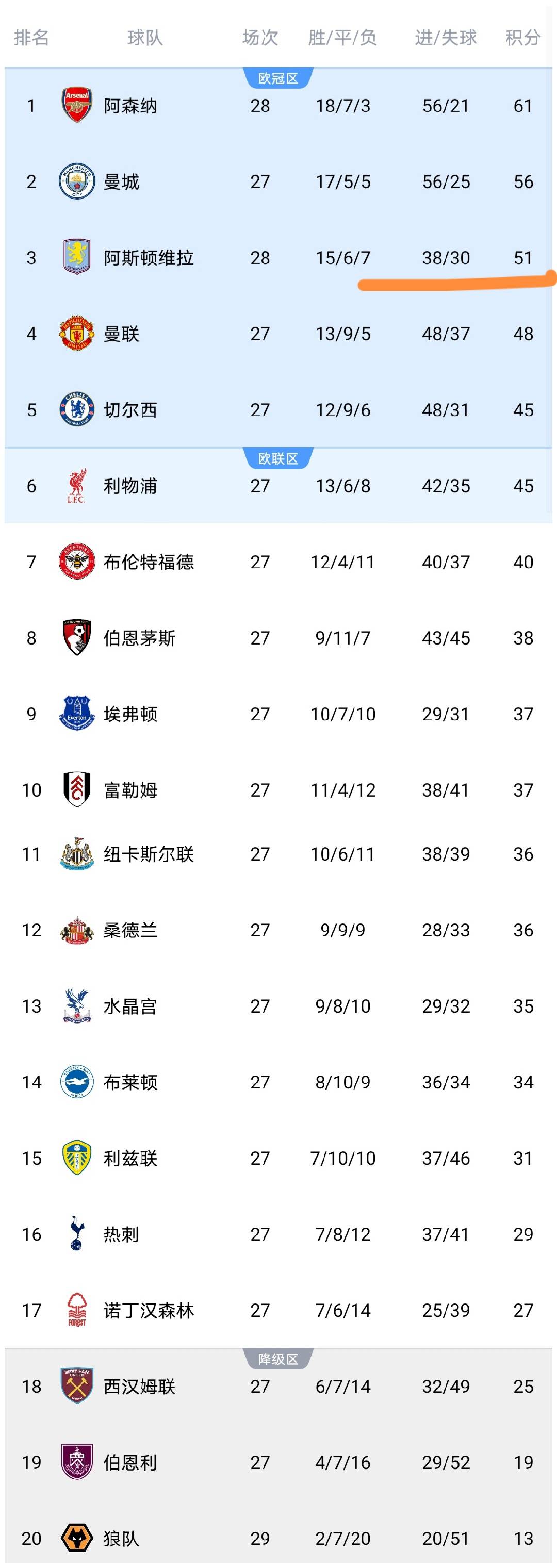 ในช่วงเช้าตรู่ของวันนี้ การแข่งขันพรีเมียร์ลีกในรอบที่ 28 ได้จบลงเป็นคู่แรก โดยทีมอันดับสามที่กำลังลุ้นแชมป์อย่างแอสตัน วิลล่า ได้เดินทางมาเยือนทีมบ๊วยของตารางอย่างวูล์ฟแฮมป์ตัน วันเดอเรอร์ส หลังจบการแข่งขันนี้ ตารางคะแนนพรีเมียร์ลีกได้เปลี่ยนแปลงไป มาดูการเปลี่ยนแปลงกัน