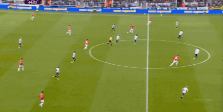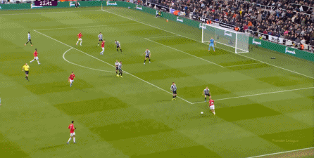 ข้อดีของจำนวนคนในสองเกมติดต่อกันนั้นเดิมเอื้อต่อผลงานของแมนเชสเตอร์ยูไนเต็ด Cunia เล่นได้เปรียบอย่างชัดเจนกับ Trippier อีกครั้ง แต่ถูก Newcastle บล็อก: