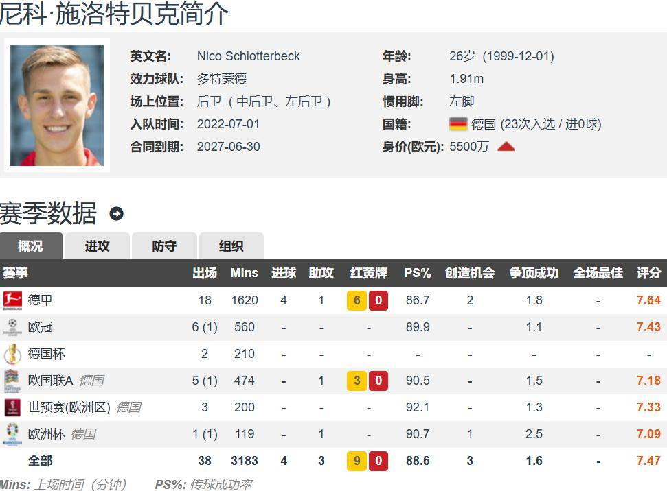 Schlott Baker อายุ 26 ปีและสูง 1.91 เมตร เขาเป็นผู้เล่นเท้าขวาและสามารถเล่นแบ็คกลางและแบ็คซ้ายได้ ประมาณการโอนเงินเยอรมัน 55 ล้านยูโร สัญญาจะอยู่จนถึงปี 2027 ซึ่งหมายความว่าหลังจากสิ้นสุดฤดูกาลผู้เล่นได้เข้าสู่ปีสัญญา ดอร์ทมุนด์ได้ให้ข้อเสนอต่ออายุ แต่ชลอทมอนด์ลังเล รอบเพลย์ออฟแชมเปี้ยนส์ลีกของดอร์ทมุนด์พลาดการแข่งขันน็อคเอาท์ และดาร์บี้ทีมชาติบุนเดสลีกากลับถูกบาเยิร์นพลิกกลับเพื่อแพ้แชมป์ และชลอตต์ แบคก็กระตือรือร้นที่จะเข้าร่วมทีมที่ใหญ่กว่าเพื่อชิงแชมป์เปี้ยนชิพมากขึ้น ดอร์ทมุนด์มีราคา 70 ล้านยูโรสำหรับชรอตต์ เบ็ค และผู้เล่นก็สนใจที่จะเข้าร่วมเรอัล มาดริดด้วย