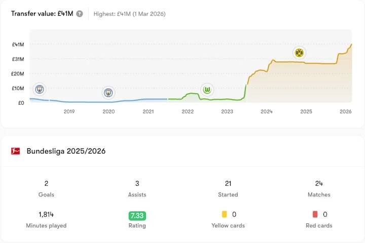 สัญญาของ Nmecha กับดอร์ทมุนด์จะดำเนินต่อไปจนถึงปี 2028 แต่ยังคงมีความไม่แน่นอนในอนาคตระยะยาวของเขาในเยอรมนี และหลายสโมสรในยุโรปเริ่มแสดงความสนใจในผู้เล่นที่ฟื้นตัวในฤดูกาลที่ผ่านมา