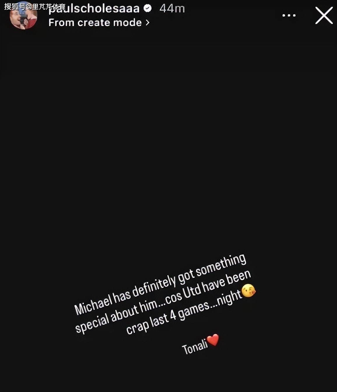 “คาร์ริกมีบางอย่างที่พิเศษ...เพราะสี่เกมล่าสุดของแมนเชสเตอร์ ยูไนเต็ด แย่มาก...ราตรีสวัสดิ์” สโคลส์เขียนบนโซเชียลมีเดีย เขาจึงลบโพสต์ แต่ภาพหน้าจอได้แพร่กระจายไปทั่วอินเทอร์เน็ต และความเสียหายก็เกิดขึ้นแล้ว