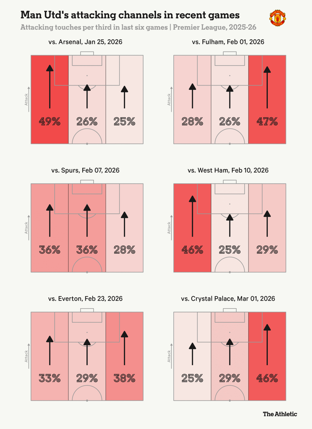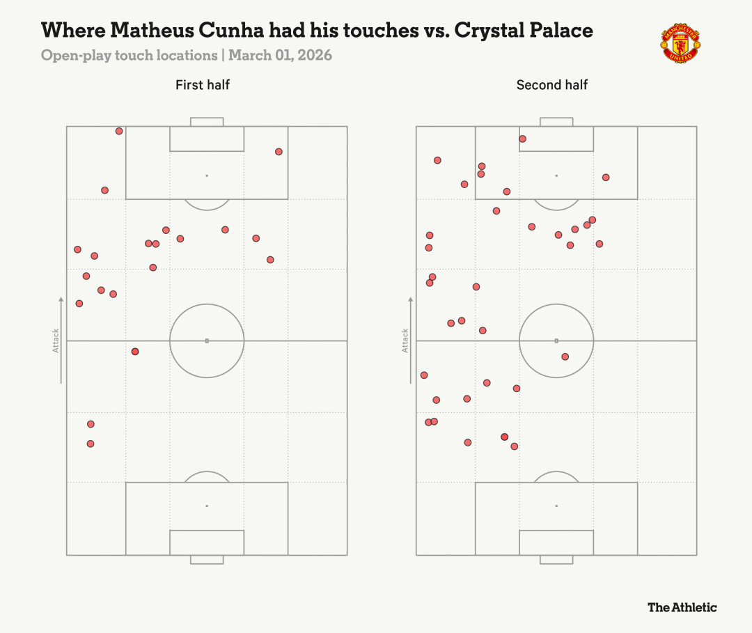 ในเกมกับคริสตัล พาเลซ อัตราส่วนการโจมตีซ้ายต่อซ้ายของแมนเชสเตอร์ ยูไนเต็ด ได้มาถึงระดับต่ำสุดในฤดูกาลนี้แล้ว หากไม่ใช่ว่าคริสตัล พาเลซมีความแข็งแกร่งทางร่างกายไม่เพียงพอในถ้วยสมาคมยุโรป และผู้เล่นน้อยกว่าหนึ่งคนในครึ่งหลัง ว่าแมนเชสเตอร์ยูไนเต็ดสามารถชนะได้หรือไม่ก็จะตั้งคำถามเช่นกัน