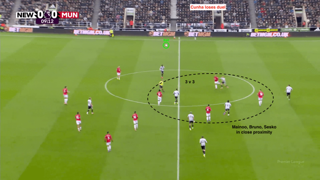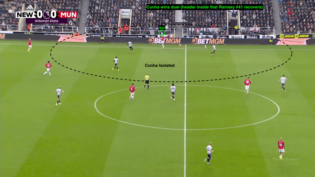 แมนเชสเตอร์ ยูไนเต็ด หวังว่า คูเนีย และ นิวคาสเซิล ทีมชาติอังกฤษ ไตรปิร์ จะสู้ ข้อมูลแสดงให้เห็นว่าในที่สุด Kunia ได้สัมผัสลูกบอล 68 ครั้ง และ Mbemo เพียง 36 ครั้งหลังจากเล่น 77 นาที และเพียง 24 ครั้งสำหรับ Sheke