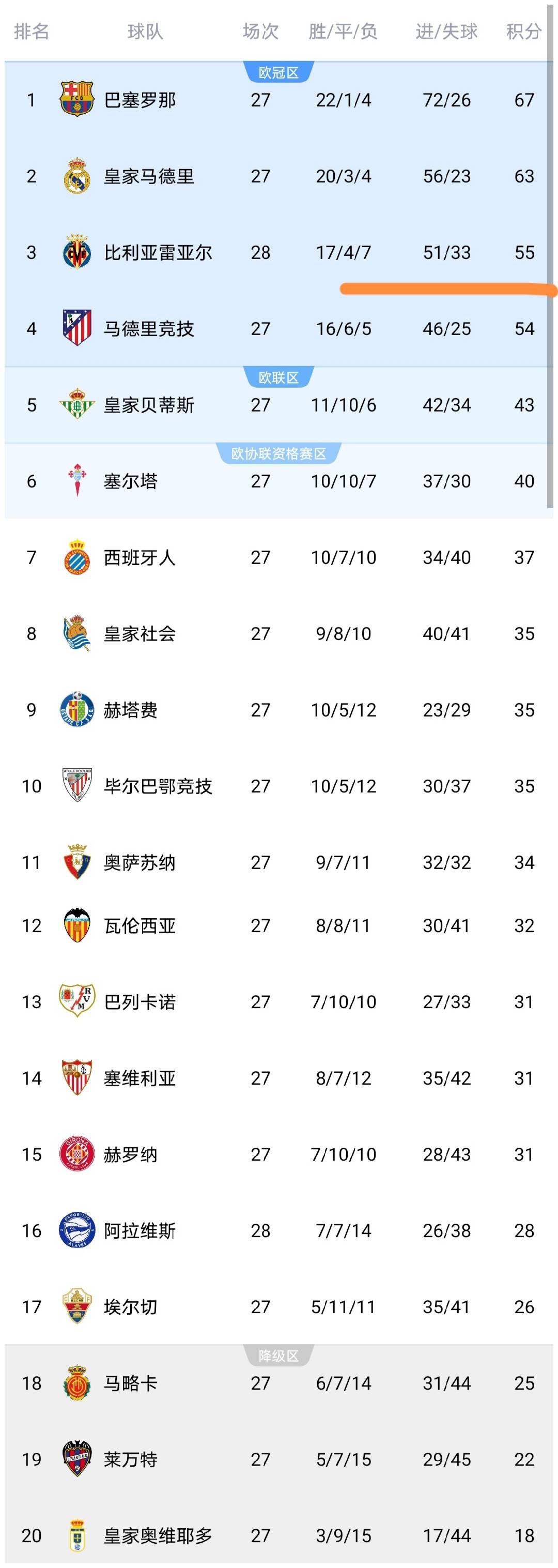 หลังจากเกมนี้ อันดับของลาลีกาเปลี่ยนไปแล้ว มาดูกัน จะเห็นได้ว่าหลังจากทีมบียาร์เรอัลทำคะแนนได้ 1 แต้ม คะแนนเพิ่มขึ้นเป็น 55 แต้ม แซงแอตเลติคัวส์ชั่วคราวและขึ้นอันดับสาม และหลังจากที่ทีมอลาวิสได้คะแนน 1 แต้ม คะแนนก็เพิ่มขึ้นเป็น 28 แต้ม นำโซนตกชั้น 3 แต้ม