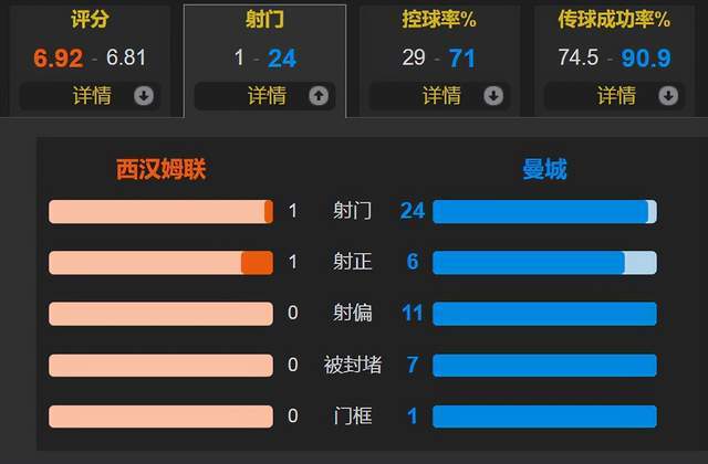 อัตราการครองบอลของเวสต์แฮม ยูไนเต็ด เพียง 29% และมีทั้งหมด 1 นัด โดยยิงเข้ากรอบ 1 นัด ยิงเข้าที่ แมนฯ ซิตี้ 24 ฟุต โดยยิงเข้าเป้า 6 นัด ในเกมที่เขาไม่สามารถชนะได้ กวาร์ดิโอล่าต้องรับผิดชอบ และฮาร์แลนด์เป็นศูนย์กลางที่ไม่มีแบ็คและเฮดเดอร์ และเขาไม่สามารถเป็นพันธมิตรกับใครได้ เกมนี้เป็น Semenio และเกมนี้เป็น Marmush บางทีรูปแบบ Wufeng อาจเหมาะกับแมนเชสเตอร์ซิตี้มากกว่า อย่างน้อยก็สามารถวิ่งได้มากขึ้นและสลับไปมา หาก Guardiola ใช้ Harland Hard ตอบโต้อย่างเฉียบขาด Demon จะไม่เข้ากันกับการควบคุมการส่งและกลยุทธ์ที่เข้มข้น