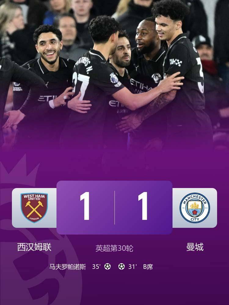 ในศึกพรีเมียร์ลีกอีกครั้ง แมนเชสเตอร์ ซิตี้ ท้าเวสต์แฮม ยูไนเต็ด และในที่สุดก็เสมอ 1-1 พลาดโอกาสที่จะไล่แต้ม ปัจจุบันเป็นรอง 9 แต้ม หลังอาร์เซนอล และสถานการณ์ของแชมป์ก็กลายเป็นแบบเฉยๆมากขึ้นเรื่อยๆ ในนาทีที่ 18 ของเกม ที่นั่ง B แสดงความสามารถส่วนตัวที่ยอดเยี่ยม หลังจากได้รับแอสซิสต์ของ Malmush เขายิงประตูทางจิตวิญญาณและแมนเชสเตอร์ซิตี้นำ 1-0