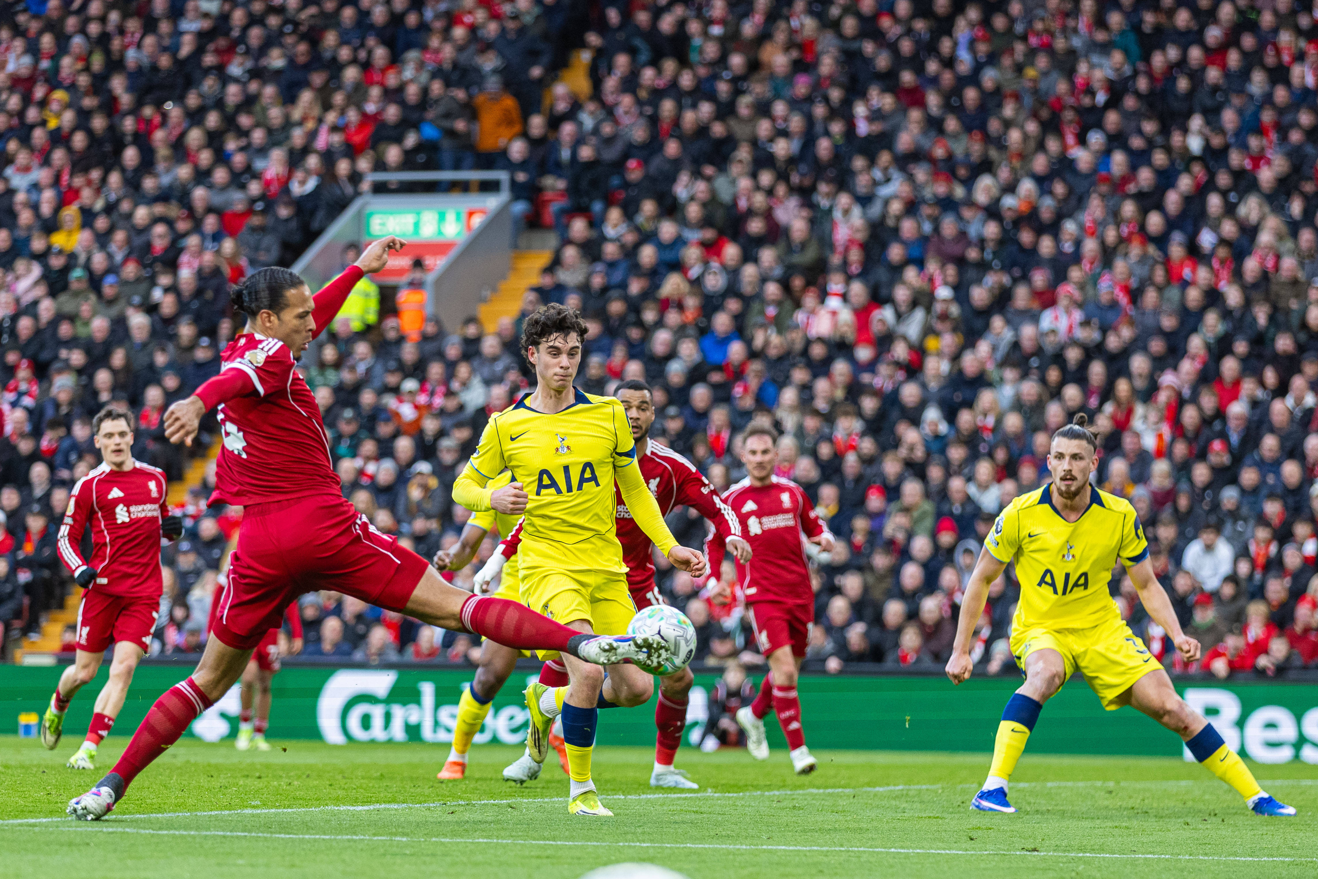 นักเตะลิเวอร์พูล แวน เด็ค (ด้านหน้าซ้าย) ในวันที่ 15 มีนาคม ยิงในเกม สำนักข่าวซินหัว