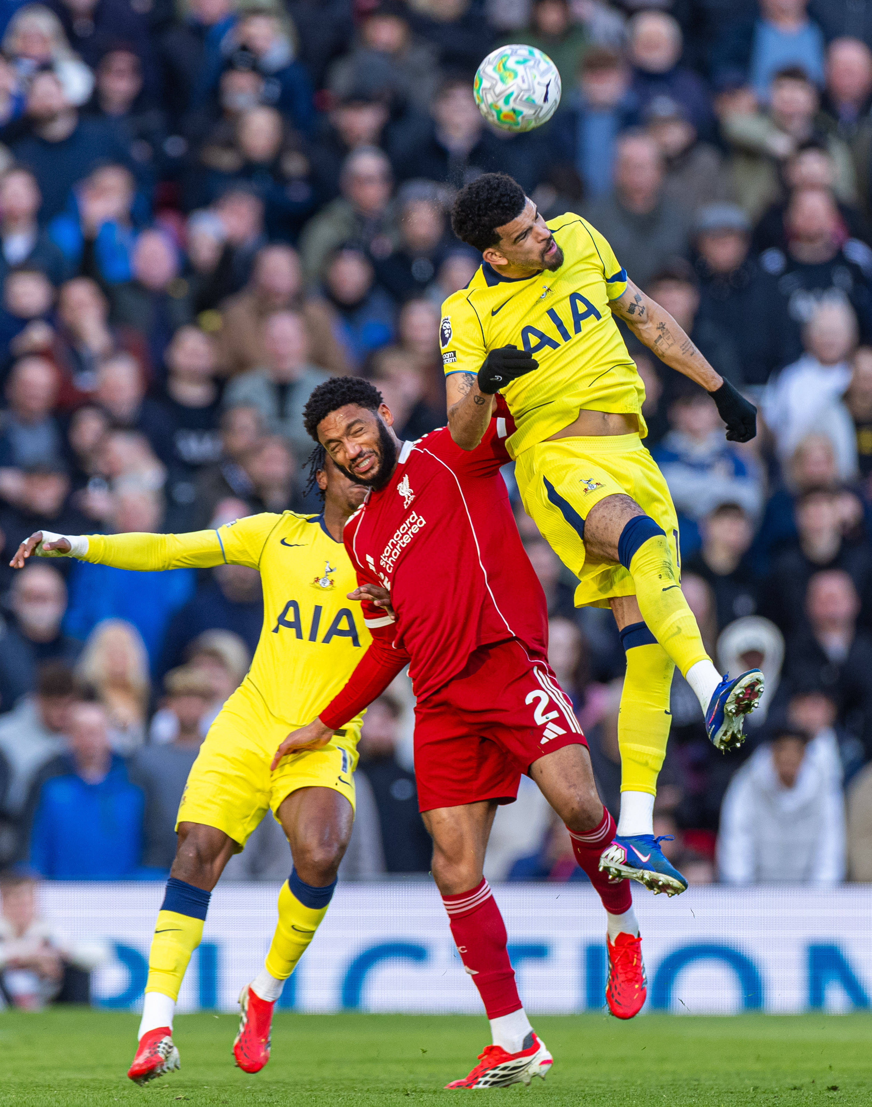 ผู้เล่นท็อตแนม Solanck เมื่อวันที่ 15 มีนาคม (ตอนที่ 1) แข่งขันกับ Gomez ผู้เล่น Liverpool (กลาง) สำนักข่าวซินหัว