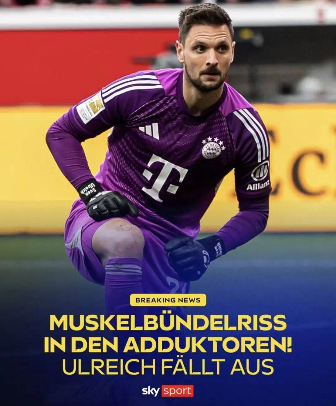 บาเยิร์น ยักษ์ใหญ่ของบุนเดสลีกา ประกาศอย่างเป็นทางการว่ากลุ่มกล้ามเนื้อส่วนเสริมด้านขวาของผู้รักษาประตูของทีม Urreich จะถูกฉีกขาด และจะออกจากแถวชั่วคราว