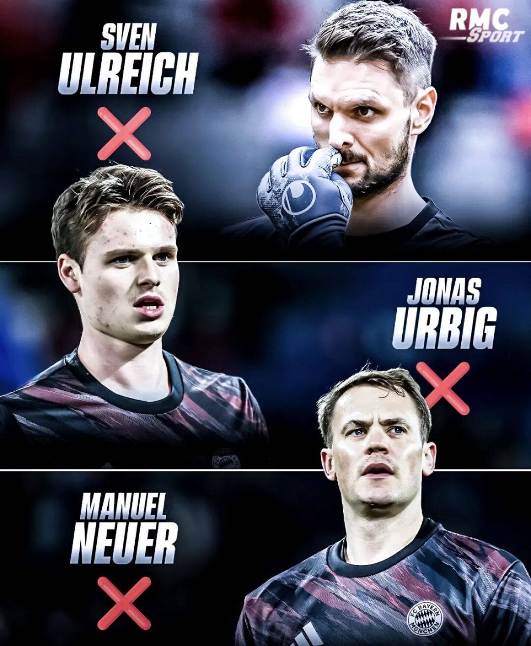 ก่อนหน้านี้ บาเยิร์นประกาศอาการบาดเจ็บที่น่องซ้ายเล็กน้อย (กล้ามเนื้อน่องซ้าย) Ulbisch (Spife) กลับมาเริ่มใหม่ในเกมกับเลเวอร์คูเซ่น แต่ในนาทีสุดท้ายเขาเริ่มรู้สึกไม่สบายที่ต้นขา ด้วยวิธีนี้ผู้รักษาประตูทีมชุดใหญ่ทั้งสามคนของสโมสรได้รับบาดเจ็บ!