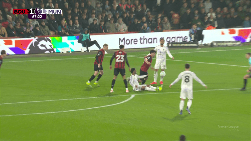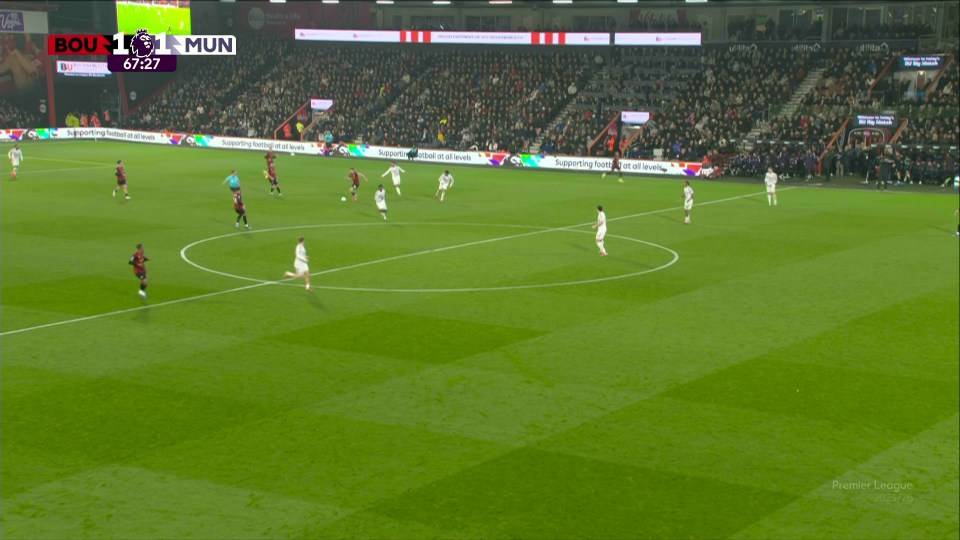 ในเวลานั้น 1-0 นำ แมนเชสเตอร์ ยูไนเต็ด เข้าสู่เขตโทษบอร์นมัธ และ บรูโน่ เฟอร์นันเดส ผ่านบอลยอดเยี่ยมให้ อมาด ดิอัลโล ที่ฉวยโอกาสจากสถานการณ์และนำมันเข้าสู่กรอบเขตโทษ และตกลงสู่พื้นภายใต้เอเดรียน ทรูวร์ ผู้ตัดสิน Stuart Atville ไม่ได้ทำฟาวล์ และ Bournemouth ได้บอลและยิงประตู