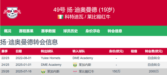 Jan Diormand ในปี 2025 หน้าต่างฤดูร้อนเข้าร่วมกับ Leipzig จาก Leganes ด้วยค่าธรรมเนียมการโอน 20 ล้านยูโรเมื่อผู้เล่นมีมูลค่าเพียง 1.5 ล้านยูโรซึ่งหมายความว่า Leipzig มี 13 ลงชื่อ The Young Talent ด้วย Premium 3 เท่าของ Premium
