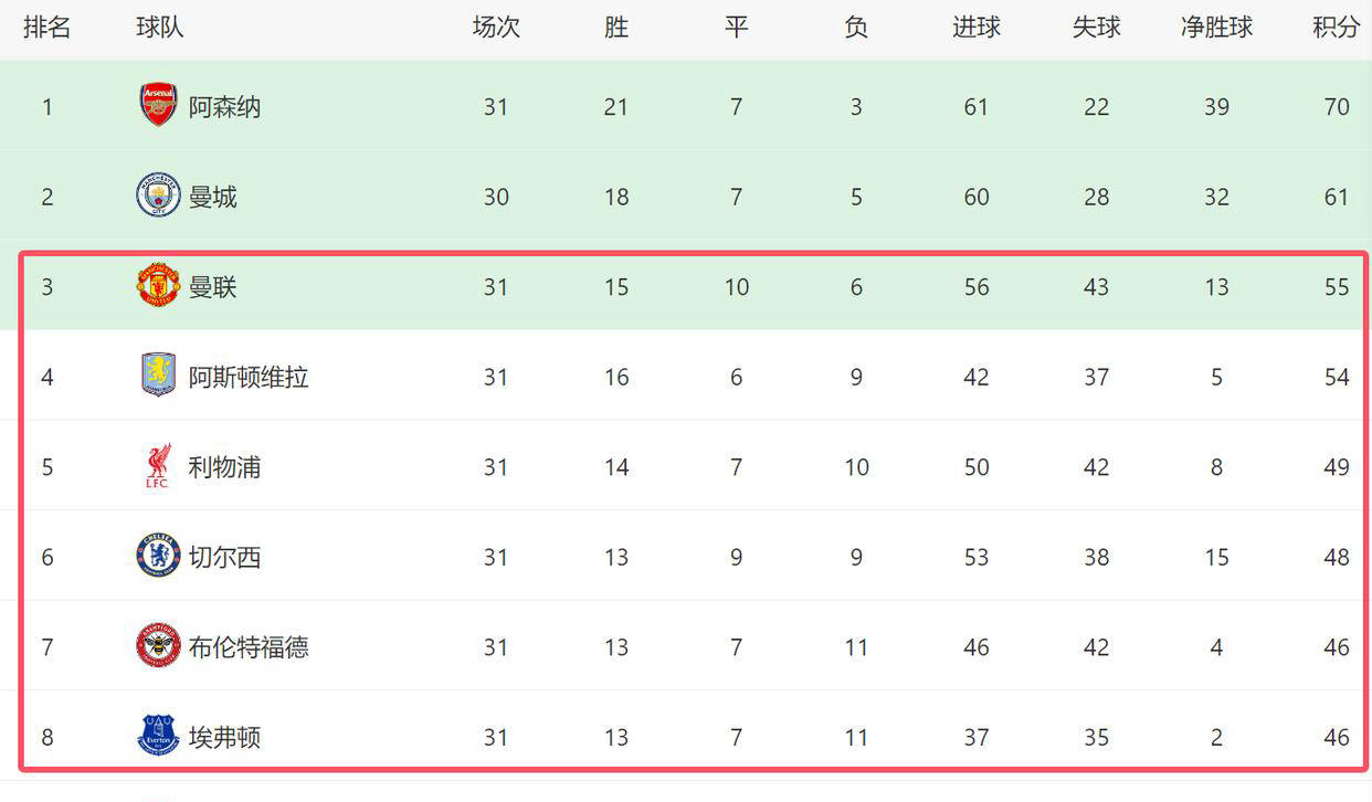 ปัจจุบันนอกเหนือจาก อาร์เซนอล ชั้นนำ และ แมนเชสเตอร์ ซิตี้, แมนเชสเตอร์ ยูไนเต็ด, วิลล่า, ลิเวอร์พูล, เชลซี, เบรนท์ฟอร์ด และ เอฟเวอร์ตัน ได้สร้าง “กลุ่มห้า” ที่ดุเดือด ทีมเหล่านี้จะแข่งขันเพื่อตายเพื่อชิงแชมป์แชมเปี้ยนส์ลีกอีก 3 นัดที่เหลือในสองสามเกมสุดท้าย และแมนเชสเตอร์ ยูไนเต็ด จะมีข้อได้เปรียบที่สำคัญอย่างน้อยสองอย่างไม่ต้องสงสัยในการแข่งขันครั้งนี้