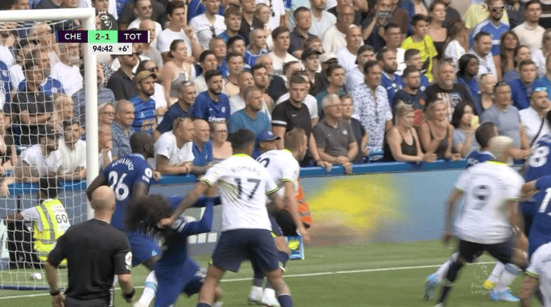 หนึ่งในฟิวส์คือผมของ Kurelia แบ็คซ้ายของ Chelsea ถูกดึงโดยพนักพิงของ Tottenham, Christian Romerola ผู้ตัดสิน Anthony Taylor ไม่ได้เป่านกหวีดและ Mike Dean ผู้ช่วยวิดีโอ VAR ไม่ได้เข้าไปแทรกแซงและในที่สุดท็อตแนมก็ผูกคะแนน