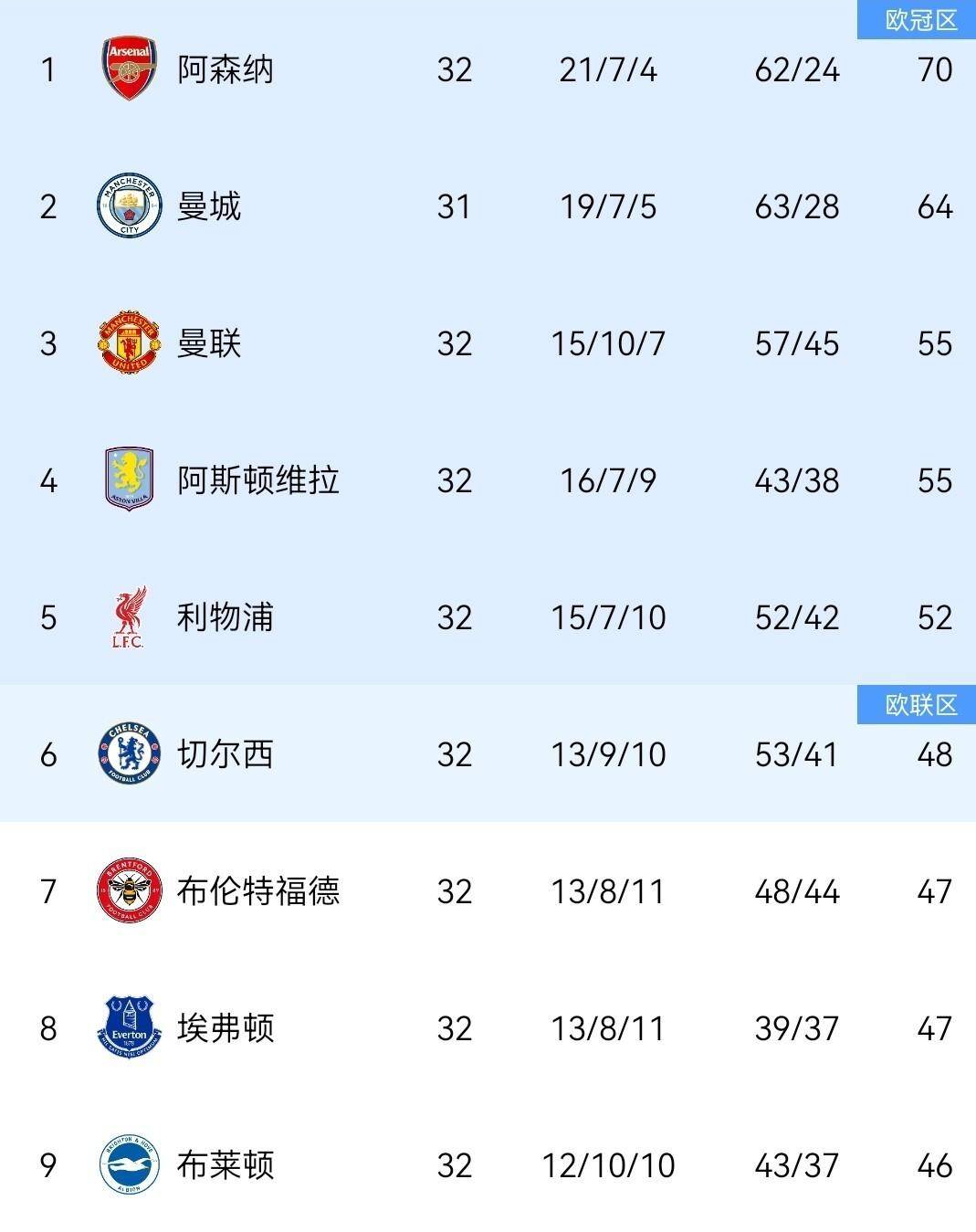 ผลงานของอาร์เซนอลในสงครามยุโรปมีส่วนสำคัญอย่างยิ่งต่อพรีเมียร์ลีกได้อย่างแม่นยำด้วยแต้มลีกยุโรปที่สะสมไว้ในช่วงแรกของพรีเมียร์ลีก รวมถึง อาร์เซนอล ที่พรีเมียร์ลีกได้ล็อคตำแหน่งแชมเปียนส์ลีก 5 นัดในฤดูกาลหน้าแล้ว อาร์เซนอลเองก็ได้ติดท็อปโฟร์ของพรีเมียร์ลีกไปแล้วในรอบ 7 นัดล่วงหน้าและผ่านเข้ารอบแชมเปี้ยนส์ลีกในฤดูกาลหน้า