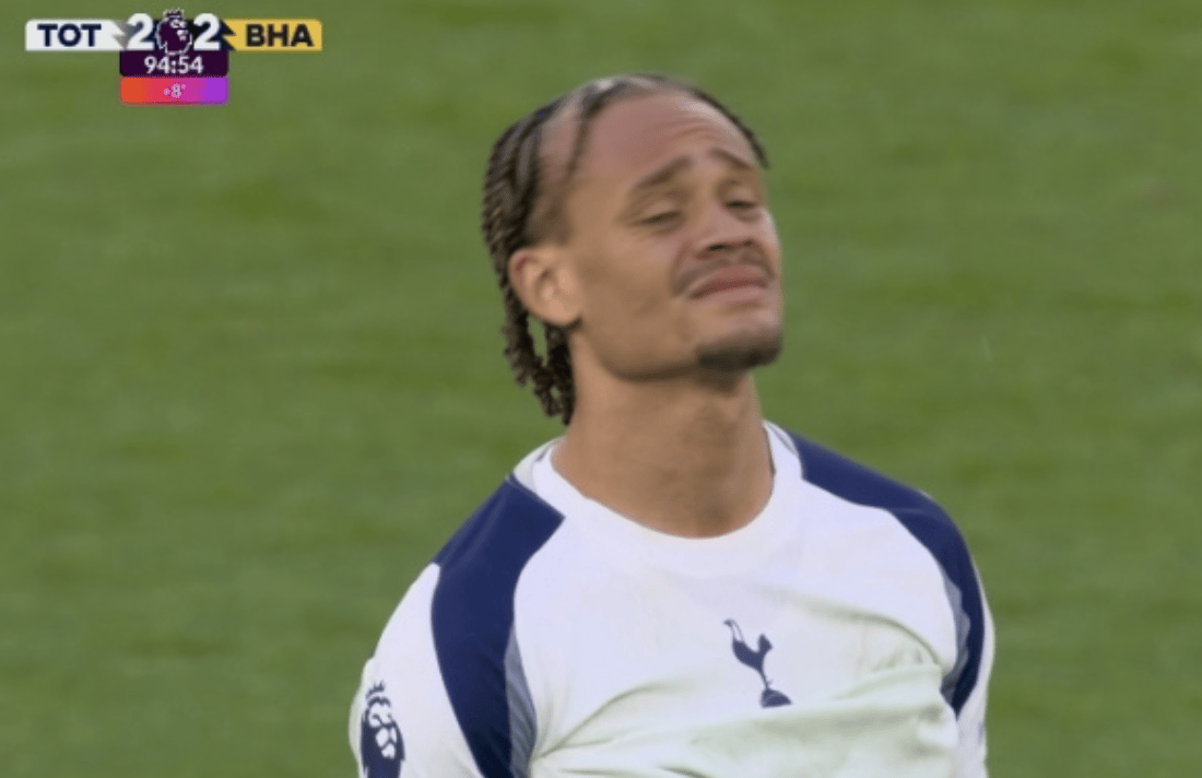 น่าเสียดายที่ซิมมอนส์กลายเป็นริชาร์ดสันคนที่สอง ในนาทีที่ 95 ไบรตันที่เหนียวแน่นทำไม้กางเขนในสามเหลี่ยมคว่ำ และรูเทลวอลเลย์อยู่กลางเขตโทษและยิงประตู! 2-2! ท็อตแนม เงียบอยู่บ้าน!