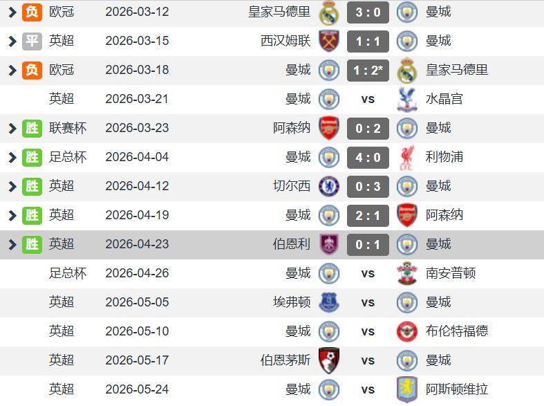 แมนเชสเตอร์ ซิตี้ เผชิญกับตารางการแข่งขันของปีศาจตั้งแต่กลางเดือนมีนาคมถึงกลางเดือนเมษายน โดยเจ็ดเกมสำหรับการแข่งขันชิงแชมป์สี่ระดับ รวมถึงเรอัล มาดริดและอาร์เซนอล 2 เกม และกับลิเวอร์พูลและเชลซี ใน 7 เกมนี้นอกจากจะถูกเรอัล มาดริดฆ่าสองครั้งเพื่อหยุดในแชมเปี้ยนส์ลีกแล้ว พวกเขามีชัยชนะ 4 ครั้งและเสมอ 1 ใน 5 เกมที่เหลือ รวมถึงการฆ่าสองครั้ง อาร์เซนอล และแม้แต่คลิเวอร์พูลและเชลซี