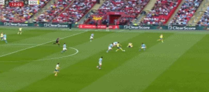 ในครึ่งหลังเปลี่ยนเกมฝั่ง แมนฯ ซิตี้ ยังอ่อน แต่เซาแธมป์ตันยิ่งกล้ามากขึ้นในการรบ ในนาทีที่ 79 มัตสึกิ จิเอิง นักเตะชาวญี่ปุ่นส่งบอลผ่านแดนหน้าได้อย่างแม่นยำ อาซาซระเบิดคลื่นโลกที่ยังไม่คลี่คลายนอกกรอบเขตโทษ ช่วยเซาแธมป์ตัน ทำลายการหยุดชะงักก่อน