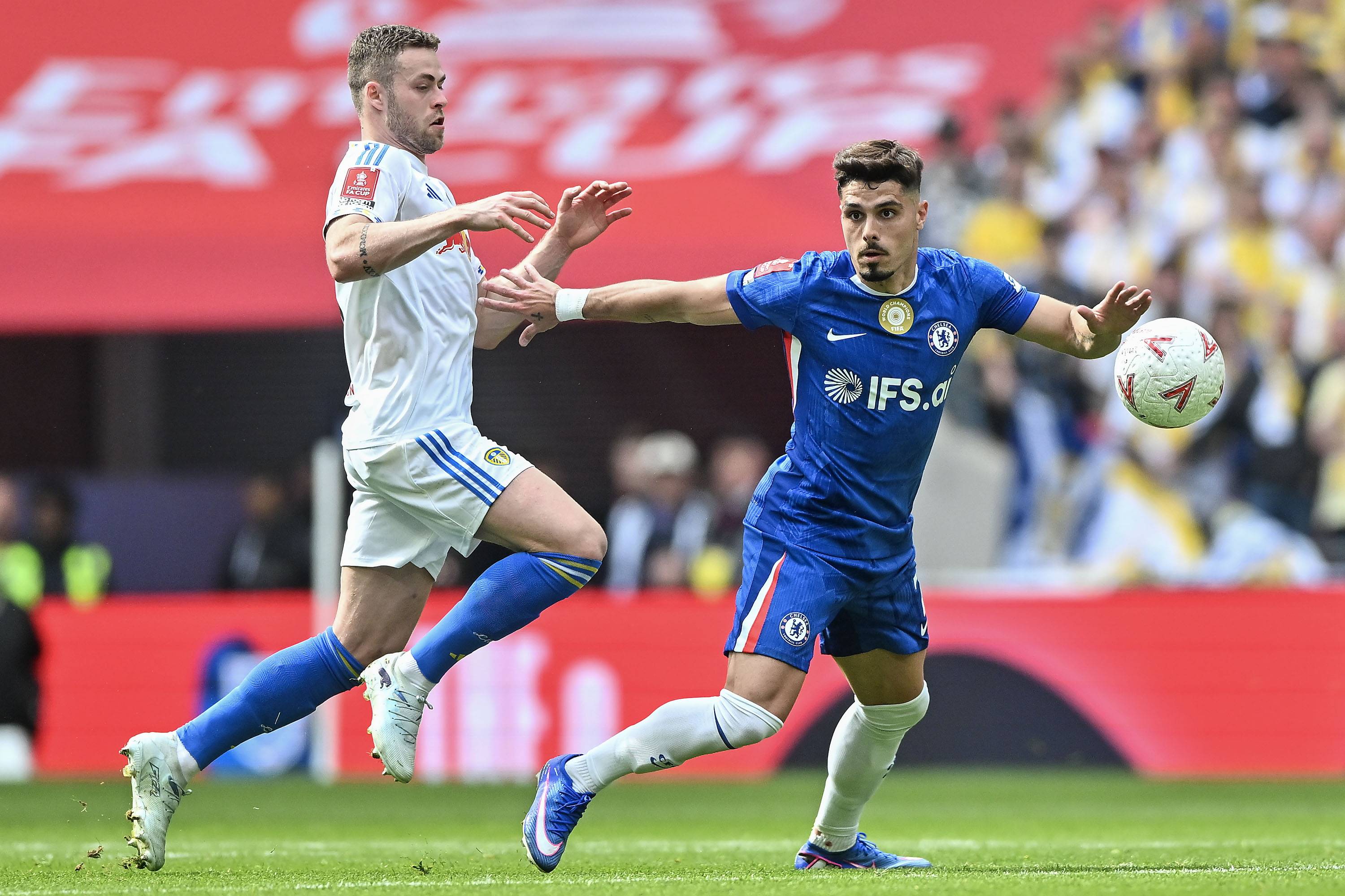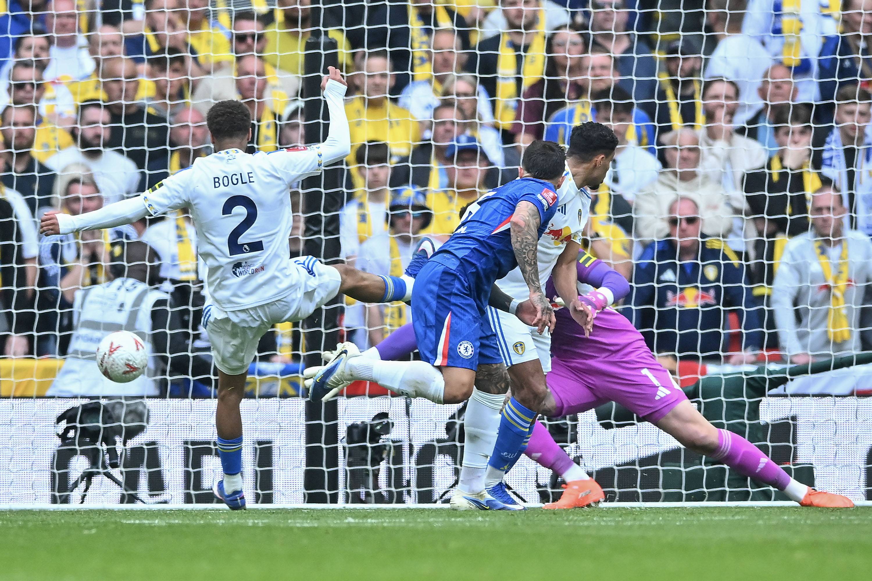 เนโต้ นักเตะเชลซี (ขวา) ในวันที่ 26 เมษายน ต่อสู้กับกู๊ดมอนสัน นักเตะลีดส์ ยูไนเต็ด สำนักข่าวซินหัว/OU XIN