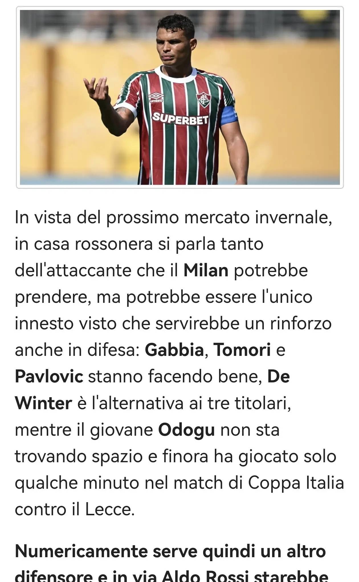 ดังนั้น ทีมจึงยังคงต้องการผู้เล่นเพิ่มเติมในตำแหน่งกองหลัง และผู้บริหารของมิลานกำลังประเมินความเป็นไปได้ในการกลับมาอย่างน่าตื่นเต้นของติอาโก้ ซิลวา