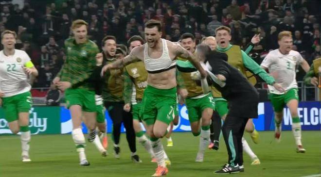 การเล่นนอกบ้าน ไอร์แลนด์สามารถกลับมาได้อย่างน่าทึ่งหลังจากตามหลังถึงสองครั้ง ฮีโร่ที่ไม่อาจโต้แย้งได้ของเกมนี้คือศูนย์หน้า พาร์รอตต์ กองหน้าชั้นสามที่เคยถูกทิ้งโดยท็อตแนม ฮอตสเปอร์ ได้กลับมาฟื้นฟูอาชีพของเขาที่สโมสรใหม่ เอแซด อัลค์มาร์พาร์รอตต์นำฟอร์มอันยอดเยี่ยมจากเอเรดิวิซี่ – ยิงได้หกประตูจากการลงสนามเจ็ดนัด – มาสู่การแข่งขันรอบคัดเลือกฟุตบอลโลก กลายเป็นฮีโร่ของไอร์แลนด์ในค่ำคืนนั้น