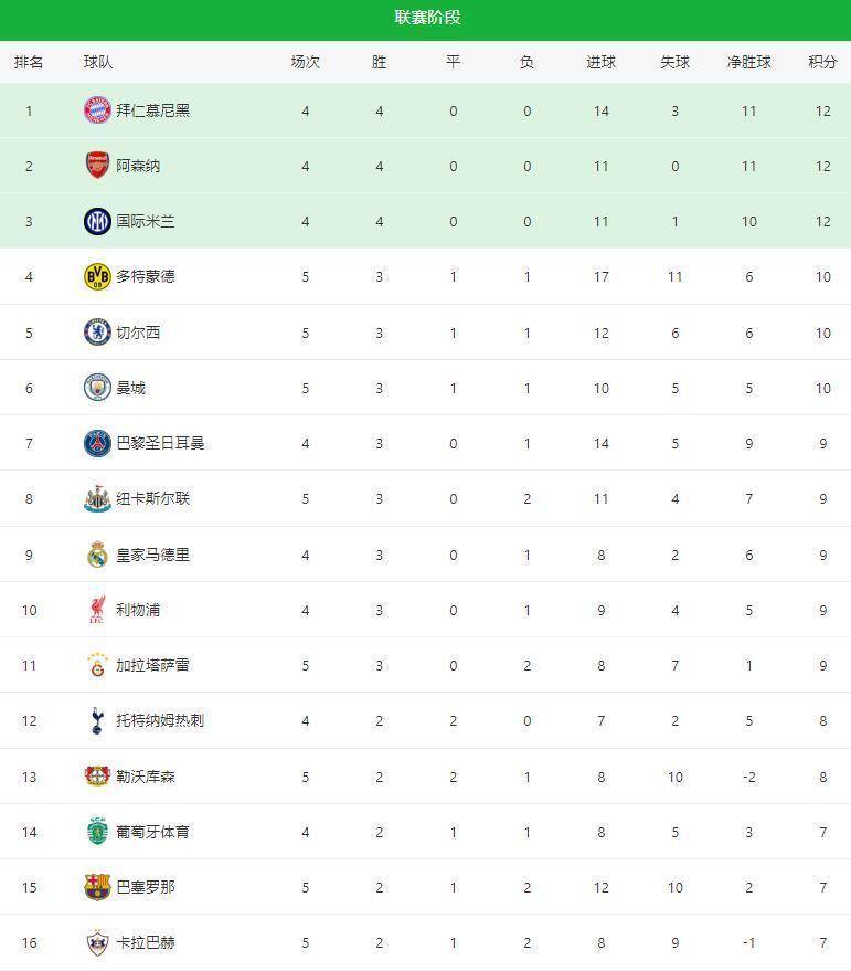 การพลิกล็อกในรอบนี้ได้เปลี่ยนแปลงอันดับในตารางแชมเปียนส์ลีกอย่างมากเชลซี, โบรุสเซีย ดอร์ทมุนด์ และแมนเชสเตอร์ ซิตี้ ต่างมี 10 คะแนนเท่ากัน ครองอันดับที่สี่ถึงหกตามลำดับเนื่องจากผลต่างประตูได้เสีย; บาร์เซโลนาหล่นไปอยู่อันดับที่ 15 ด้วย 7 คะแนน; ส่วนชัยชนะของไบเออร์ เลเวอร์คูเซ่นทำให้พวกเขามี 8 คะแนนและปรับปรุงอันดับได้อย่างมาก; ที่น่าสังเกตคือ การแข่งขันในโซนกลางตารางนั้นดุเดือดเป็นพิเศษ โดยมีช่องว่างเพียง 3 คะแนนระหว่างอันดับสี่ถึงอันดับที่ 18 – ซึ่งหมายความว่าทุกนัดการแข่งขันสามารถทำให้เกิดการเปลี่ยนแปลงอันดับที่น่าตื่นเต้นได้