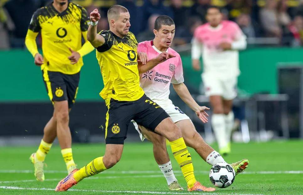 ควรสังเกตว่าฮาแลนด์ทำประตูได้หนึ่งลูกในนัดนี้และยิงชนเสาหรือคานถึงสองครั้ง พลาดโอกาสทำแฮตทริกไปอย่างหวุดหวิด อย่างไรก็ตาม เขาสามารถทำประตูครบ 100 ลูกในการลงสนามเพียง 111 นัด กลายเป็นนักเตะที่เร็วที่สุดในประวัติศาสตร์พรีเมียร์ลีกที่ทำสถิตินี้ได้สำเร็จ **DFB-Pokal: โบรุสเซีย ดอร์ทมุนด์ พบ ไบเออร์ เลเวอร์คูเซ่น** สองทีมยักษ์ใหญ่แห่งบุนเดสลีกา โบรุสเซีย ดอร์ทมุนด์ และ ไบเออร์ เลเวอร์คูเซ่น ปะทะกันในรอบ 16 ทีมสุดท้ายของ DFB-Pokalทั้งสองฝ่ายเข้าสู่การแข่งขันในฐานะตัวเต็งที่จะคว้าแชมป์ในศึกถ้วยฤดูกาลนี้ โดยดอร์ทมุนด์ครองอันดับสามในบุนเดสลีกา และเลเวอร์คูเซ่นตามมาติดๆ ในอันดับสี่ แม้จะได้เปรียบจากการเล่นในบ้าน ดอร์ทมุนด์กลับประสบปัญหาในการสร้างโอกาสทำประตูที่ชัดเจนในครึ่งแรก แม้จะยิงได้ถึงเก้าครั้ง แต่ไม่มีลูกใดตรงกรอบเลย พวกเขาพลาดโอกาสทองไปหนึ่งครั้ง และไม่สามารถใช้ประโยชน์จากลูกเตะมุมถึงหกครั้ง ในขณะที่เลเวอร์คูเซ่นแสดงให้เห็นถึงประสิทธิภาพในการโจมตีที่เหนือกว่า ในนาทีที่ 34 เลเวอร์คูเซ่นเปิดเกมโต้กลับอย่างไหลลื่น ก่อนที่กริมัลโด้จะจ่ายบอลให้มาซซ่าทำประตูแรกของเกม ส่งเลเวอร์คูเซ่นขึ้นนำ 1-0 ครึ่งหลังทั้งสองทีมเปิดเกมรุกแลกกัน แต่สกอร์ยังคงเดิม เลเวอร์คูเซ่นเอาชนะดอร์ทมุนด์ 1-0 ผ่านเข้าสู่รอบต่อไป และยุติเส้นทางศึกเดเอฟเบ โพคาลของดอร์ทมุนด์