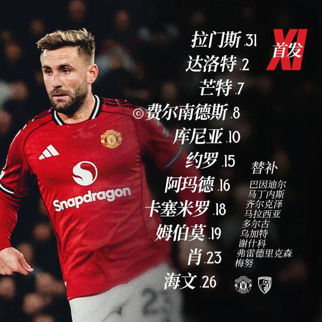 เวลา 4:00 น. ตามเวลาปักกิ่ง วันที่ 16 ธันวาคม แมนเชสเตอร์ ยูไนเต็ด เปิดบ้านรับการมาเยือนของบอร์นมัธ ในนัดที่ 16 ของฤดูกาลพรีเมียร์ลีก 2025-26