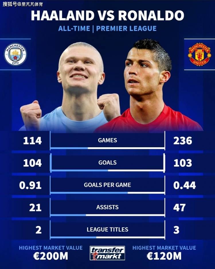 แมนเชสเตอร์ ซิตี้ คว้าชัยชนะอย่างขาดลอย 3-0 เหนือเวสต์แฮม ในรอบนี้ของพรีเมียร์ลีก โดยเออร์ลิง ฮาลันด์ ทำสองประตูและหนึ่งแอสซิสต์ ทำให้เขาแซงหน้าสถิติการทำประตูในพรีเมียร์ลีกของคริสเตียโน โรนัลโดได้ Transfermarkt ยังได้เปรียบเทียบสถิติสำคัญในพรีเมียร์ลีกของทั้งสองผู้เล่นอีกด้วย