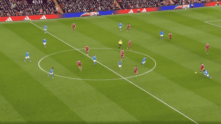 ในนาทีที่ 42, วีร์ตซ์ และ เอคิติเก้ สลับตำแหน่งกัน, โดย เอคิติเก้ ส่งบอลอย่างยอดเยี่ยมให้ วีร์ตซ์ ทำประตูแรกของเขาตั้งแต่เข้าร่วมกับลิเวอร์พูล.
