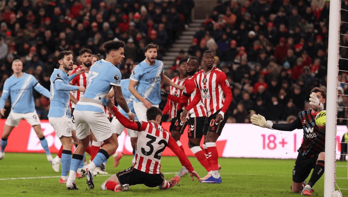 แมนเชสเตอร์ ซิตี้ เสมอแบบไร้สกอร์เช่นกัน โดยทีม "เรือใบสีฟ้า" เดินทางไปเยือนซันเดอร์แลนด์ที่เพิ่งเลื่อนชั้นขึ้นมาใหม่ ซิตี้ทำผลงานได้ย่ำแย่ในครึ่งแรก โดยยิงตรงกรอบเพียงสองครั้งและสร้างโอกาสที่ชัดเจนน้อยกว่าซันเดอร์แลนด์มาก โชคดีที่ดอนนารุมม่าโชว์ฟอร์มยอดเยี่ยมช่วยให้ซิตี้ไม่เสียประตูก่อน หลังจากพักครึ่ง ซิตี้เร่งเกมรุกและสร้างโอกาสได้มากมาย อย่างไรก็ตาม โชคไม่เข้าข้างพวกเขาซาวินี, กวาร์ดิโอล, โดกุ และ โฟเดน ต่างก็เห็นความพยายามของพวกเขาถูกปฏิเสธ กวาร์ดิโอลยิงชนเสาซึ่งเป็นการพลาดที่น่าเจ็บปวดที่สุด แม้จะยิงไป 12 ครั้งในครึ่งหลัง แมนเชสเตอร์ ซิตี้ ก็ไม่สามารถทำประตูได้ ความชนะติดต่อกัน 8 นัดในทุกรายการของพวกเขาสิ้นสุดลง ทำให้ช่องว่างกับอาร์เซนอลกว้างขึ้น