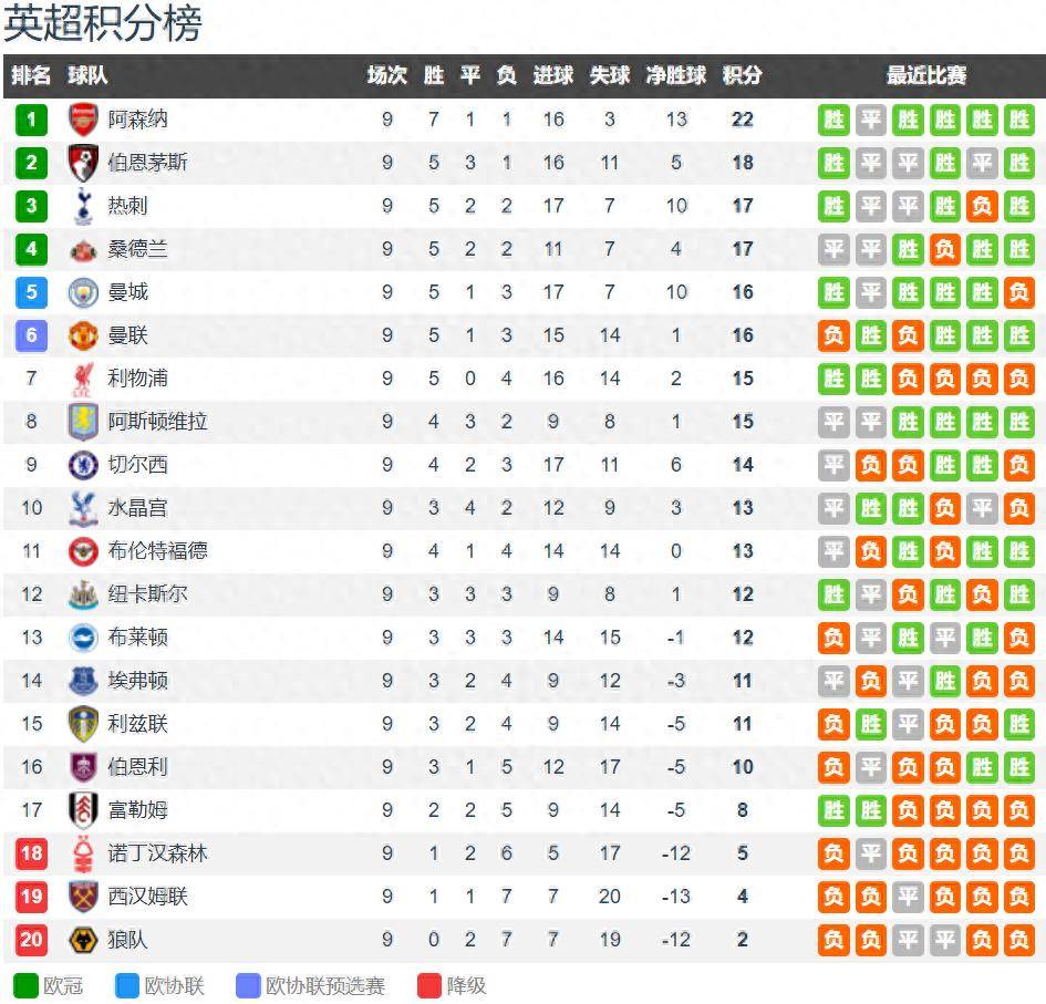 - 热刺:上赛季保级,今年夏窗挖来布伦特福德教练弗里克,热刺攻防两端确实变得更加平衡,9轮5胜2平2负积17分排名第三,是阿森纳之外英超Big6球队联赛排名最高的球队。