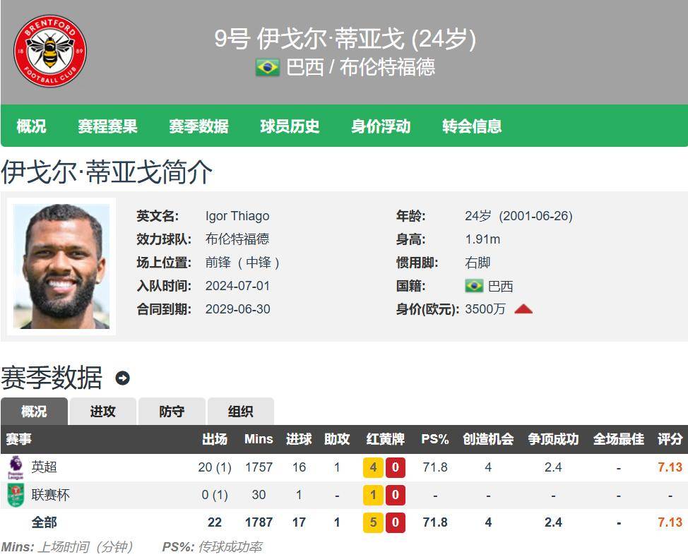 กองหน้าคนใหม่แจ้งเกิด: ยิงห้าประตูในสองนัดบดบังฮาแลนด์ ทำลายสถิติผู้เล่นบราซิลด้วยการยิง 16 ประตูในพรีเมียร์ลีกฤดูกาลนี้ _Igor_Thiago_กองหน้าตัวเป้า