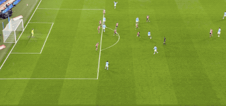 ในนาทีที่ 79 แมนเชสเตอร์ ซิตี้ เล่นลูกเตะมุมเชิงกลยุทธ์ ลูอิสจ่ายบอลให้ และโอไรลี่ย์โหม่งทำประตู
