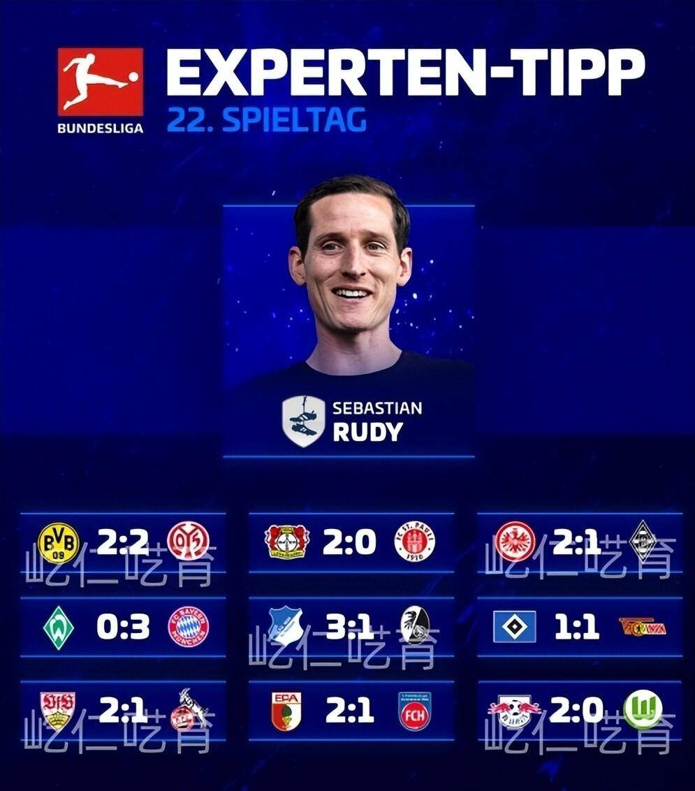 นอกเหนือจากสองนัดนี้แล้ว รูดี้ยังทำนายผลการแข่งขันสำหรับอีกเจ็ดนัดในบุนเดสลีกาในรอบนี้ด้วย ไบเออร์ เลเวอร์คูเซ่น 2-0 เซนต์ เพาลี, ไอน์ทรัค แฟร้งค์เฟิร์ต 2-1 โบรุสเซีย มึนเช่นกลัดบัค, ทีเอสจี ฮอฟเฟ่นไฮม์ 3-1 เอสซี ไฟร์บวร์ก, ฮัมบูร์ก เอสวี 1-1 ยูเนียน เบอร์ลิน, วีเอฟแอล สตุ๊ตการ์ต 2-1 1. เอฟซี โคโลญจน์, เอฟซี อูเออร์สบวร์ก 2-1 1. เอฟซี ไฮเดนไฮม์, อาร์บี ไลป์ซิก 2-0 วีเอฟแอล โวล์ฟสบวร์ก.
