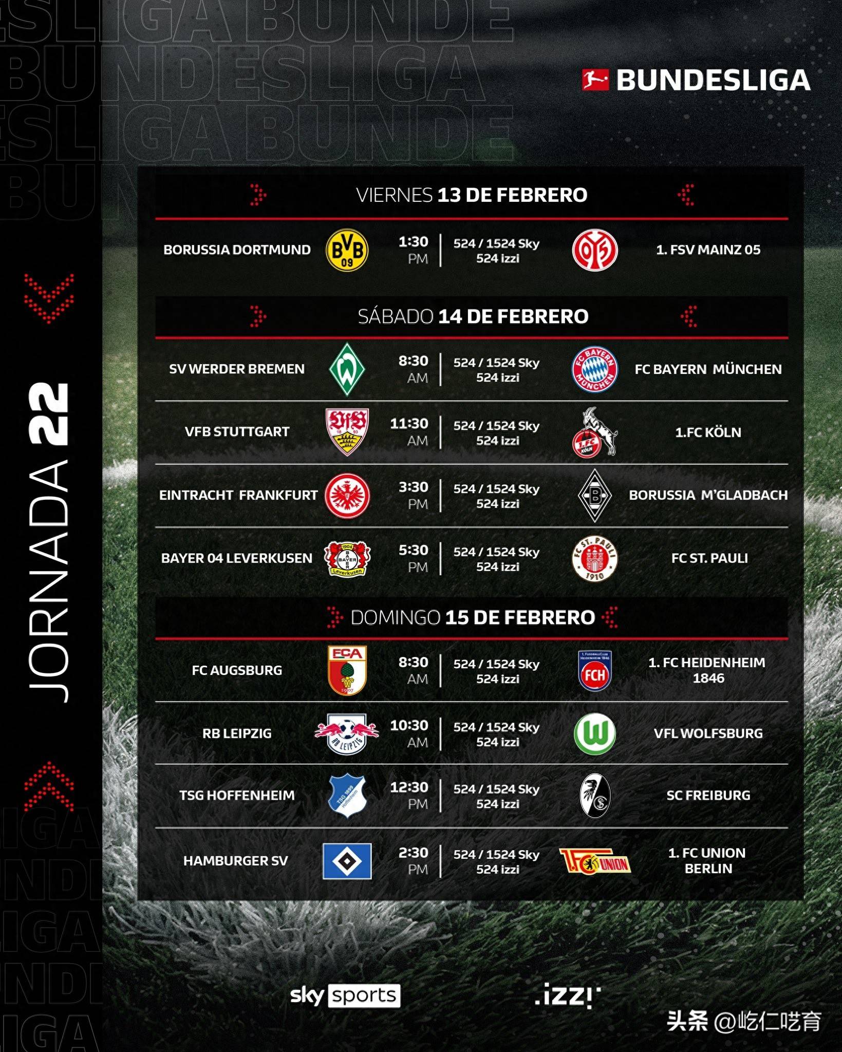 ตั้งแต่เวลา 03:30 น. ของวันที่ 14 กุมภาพันธ์ ถึงเวลา 00:30 น. ของวันที่ 16 กุมภาพันธ์ ตามเวลาปักกิ่ง การแข่งขันทั้งเก้าคู่ของรอบที่ 22 ของฤดูกาลบุนเดสลีกา 2025/26 จะแข่งขันกันในสุดสัปดาห์นี้ ในรอบนี้ โบรุสเซีย ดอร์ทมุนด์, ไบเออร์ เลเวอร์คูเซ่น และอาร์บี ไลป์ซิก จะเล่นในบ้าน พบกับไมนซ์, แซงต์เพาลี และโวล์ฟสบวร์ก ตามลำดับ ขณะที่บาเยิร์น มิวนิค จะออกไปเยือนแวร์เดอร์ เบรเมน