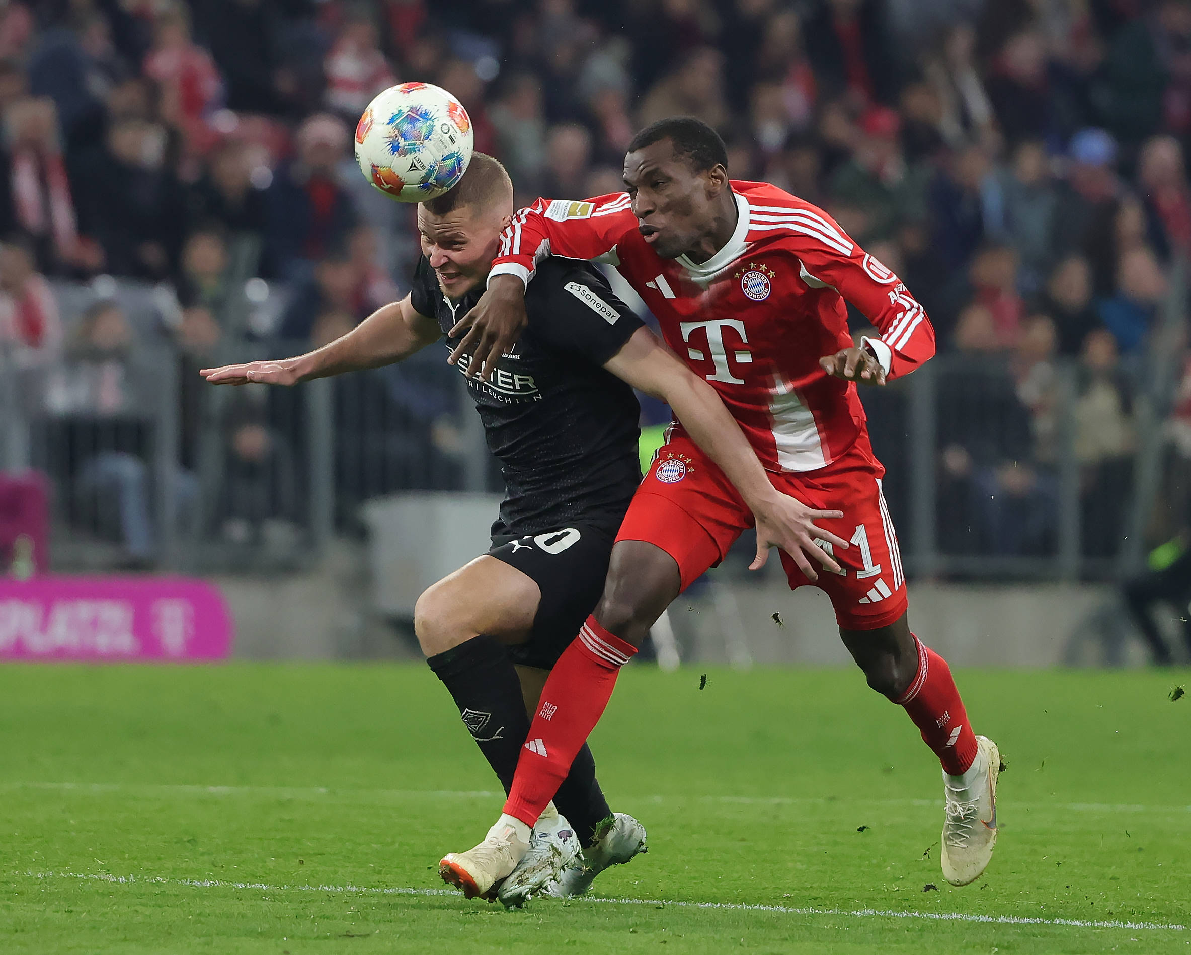 ผู้เล่นบาเยิร์น มิวนิค แจ็กสัน (ขวา) ยิงประตู 6 มีนาคม ในเกม สำนักข่าวซินหัว (ภาพโดย ฟิลิป รุยซ์)