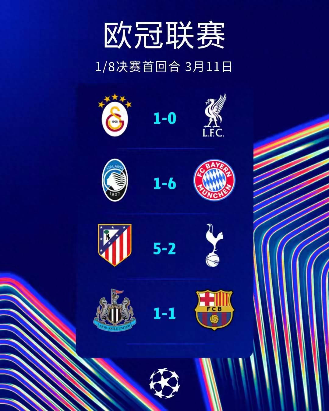 ทบทวนวันแรกของรอบแรกของแชมเปี้ยนส์ลีก 1/8 รอบชิงชนะเลิศ: กาลาตาซาราย 1-0 ลิเวอร์พูล, แอตแลนต้า 1-6 บาเยิร์น, แอตเลติโก มาดริด 5-2 ท็อตแนม, นิวคาสเซิล 1-1 บาร์เซโลนา