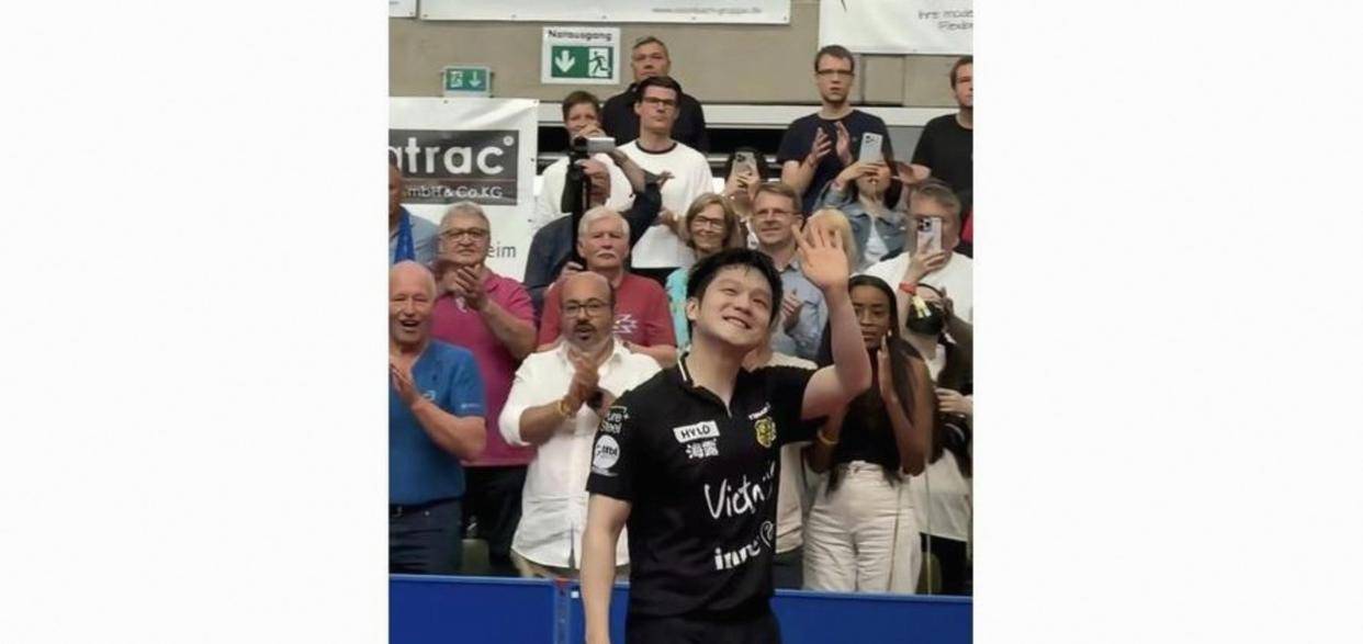 ฟาน เจินตง โบกมือลาผู้ชมและร้องไห้ในบุนเดสลีกาอารีน่า นี่คือศูนย์รวมของสไตล์ดาราตัวจริงและ pattern_competition_salbrücken_young man