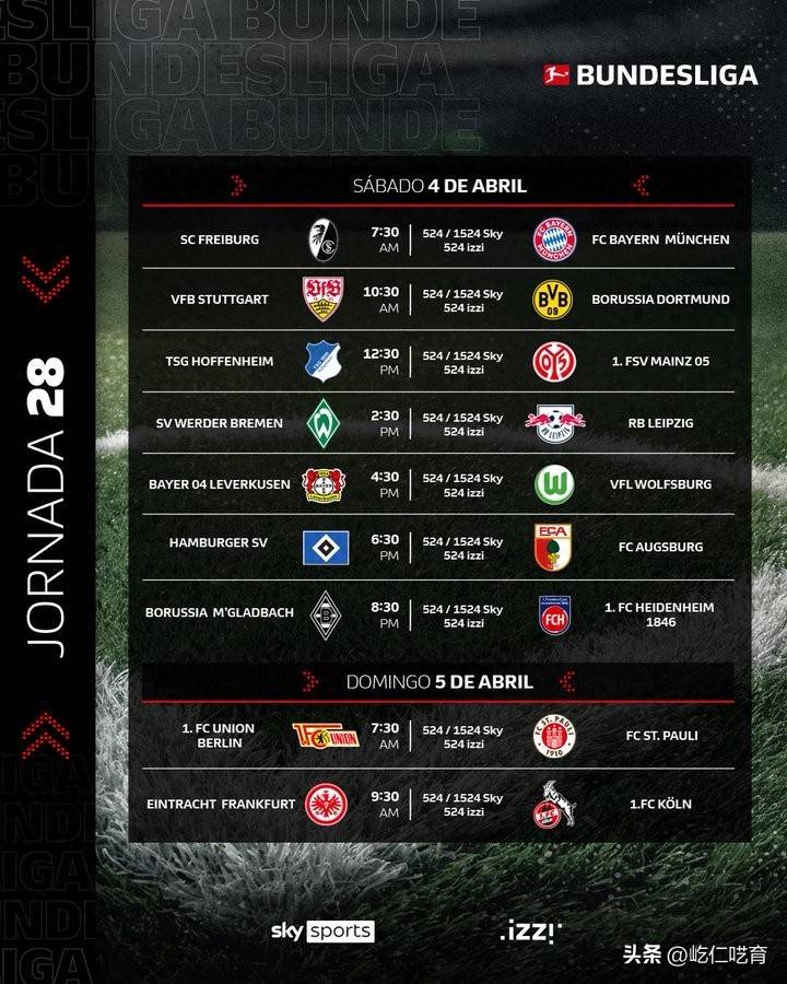 ตั้งแต่เวลา 21:30 น. ของวันที่ 4 เมษายน เวลาปักกิ่งถึง 23:30 น. ของวันที่ 5 เมษายน รอบที่ 28 ของ 25/26 บุนเดสลีกาจะเริ่มการแข่งขันทั้ง 9 เกมในสุดสัปดาห์นี้ ในรอบนี้ บาเยิร์น, RB Leipzig และ Dortmund อยู่ห่างออกไป และฝ่ายตรงข้ามคือ Freiburg, Bremen และ Stuttgart