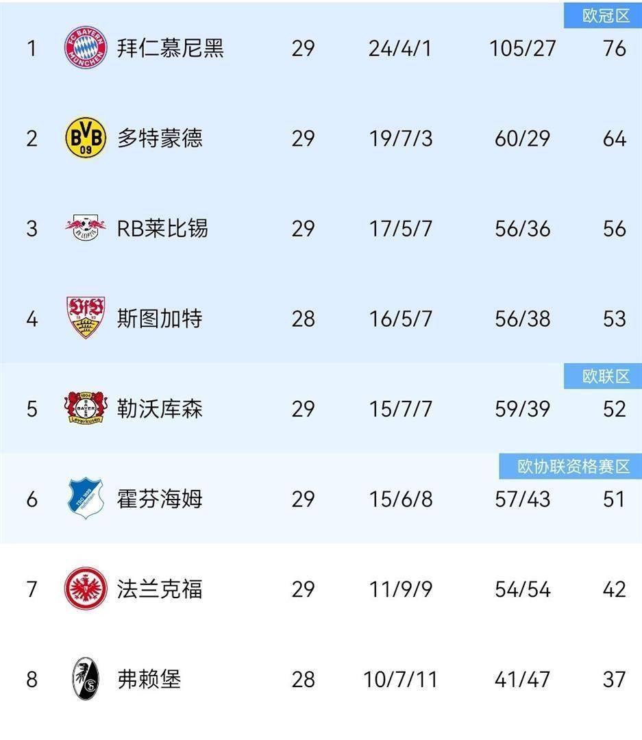 บาเยิร์นขี่ Juechen ที่ด้านบน แต่ทีมด้านล่างกลายเป็นหม้อโจ๊ก การต่อสู้เพื่อชีวิตและความตายที่แท้จริงในแชมเปี้ยนส์ลีก RB Leipzig อันดับที่สาม 56 คะแนน, สตุตการ์ตที่สี่ 53 คะแนน, เลเวอร์คูเซ่นที่ห้า 52 คะแนนและฮอฟเฟ่นไฮม์ที่หก 51 คะแนน จากที่สามถึงหก ความแตกต่างของจุดสูงสุดคือ 5 คะแนนเท่านั้น นี่หมายความว่าอย่างไร? หมายความว่าหลังจากแต่ละรอบของเกมอาจเปลี่ยนโฉมหน้าของแชมเปี้ยนส์ลีก