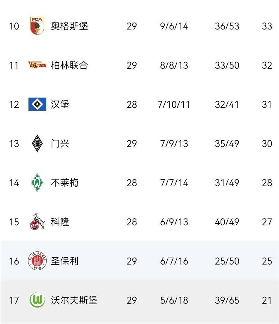 พื้นที่ตกชั้นยิ่งวุ่นวาย จากอันดับที่ 9 เบอร์ลิน ยูไนเต็ด มีมากถึง 10 ทีมที่ไม่พ้นอันตราย เฮย์เดนไฮม์อยู่ที่ด้านล่างของ 19 แต้ม โวล์ฟสเบิร์กมี 21 แต้ม และเซนต์เปาลีมี 25 แต้มในปล่องภูเขาไฟของเพลย์ออฟการตกชั้น ทีมเหล่านี้แน่นมาก และชัยชนะสามารถปีนออกจากขุมนรกได้ และความพ่ายแพ้อาจถึงวาระ ทีมสมัยก่อนอย่าง แวร์เดอร์ เบรเมน และ วูล์ฟสบวร์ก ที่มีประวัติรุ่งโรจน์ต้องทำงานหนักเพื่ออยู่ในบุนเดสลีก้า ไม่ต้องพูดถึงความตื่นเต้นของฉาก