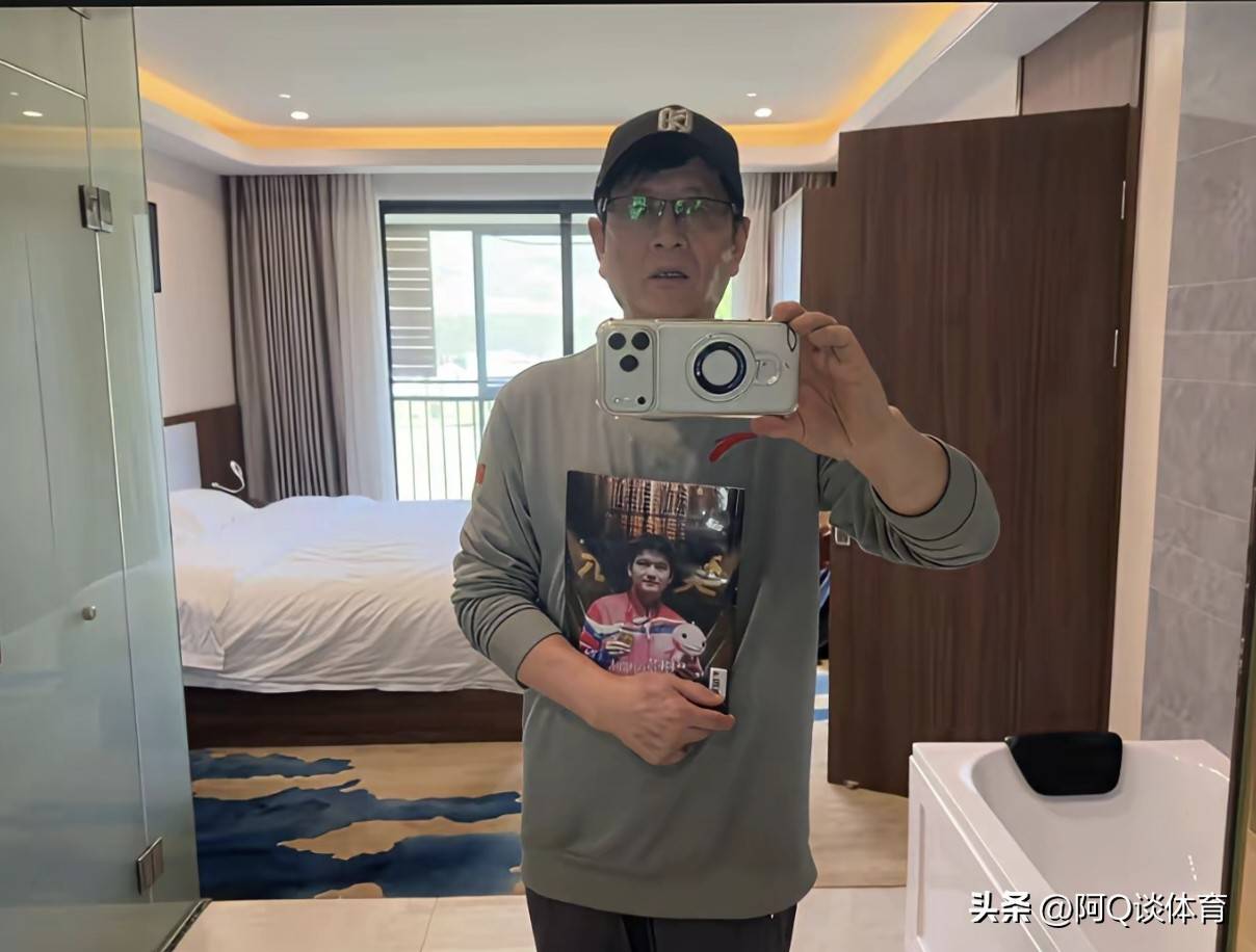 ในภาพ คุณวูสวมเสื้อผ้าที่มีรูปของฟ่านเจินตง และรอยยิ้มของเขานั้นเรียบง่ายเกินไป โค้ชเหรียญทองที่พาหม่าหลิน หวังเฮา และซู่ซินด้วยมือเดียวส่งเสี่ยวปังขึ้นครองบัลลังก์แกรนด์สแลม โอลิมปิกปารีส