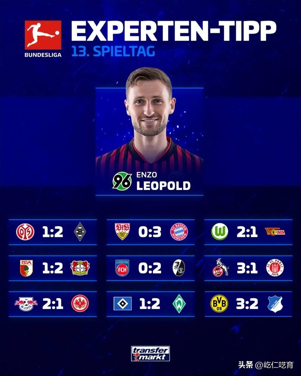 ทรานสเฟอร์มาร์ค บุนเดสลีกา ทำนายผล: ไมนซ์ 1-2 กลัดบัค สตุ๊ตการ์ท 0-3 บาเยิร์น แอร์เบ ไลป์ซิก 2-1 แฟรงค์เฟิร์ต ดอร์ทมุนด์ 3-2 ฮอฟเฟ่นไฮม์